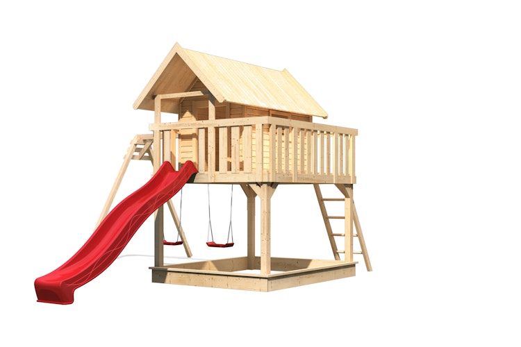 Akubi Stelzenhaus Fidel mit Satteldach inkl. Wellenrutsche und Doppelschaukelanbau