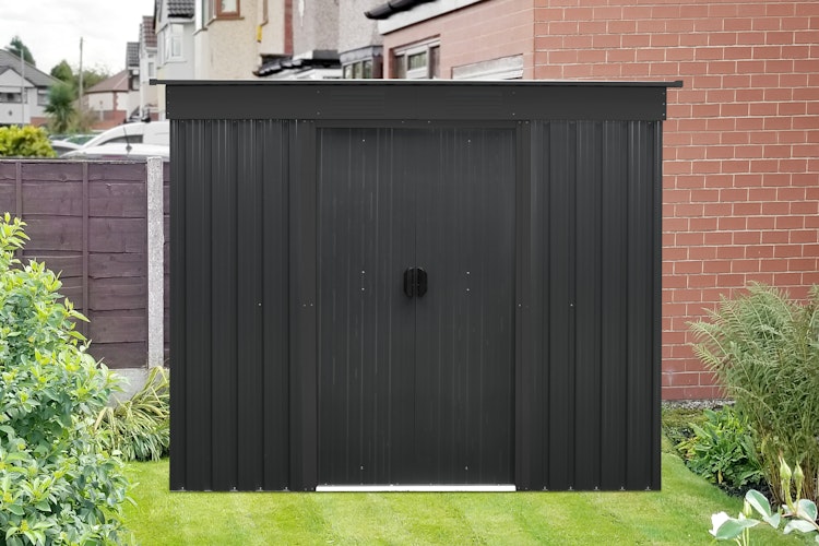 - Gerätehaus mit Pultdach und integrierter Schiebetür
