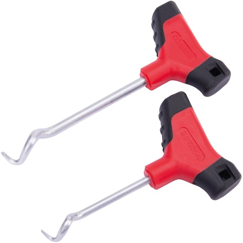 Der 2-teilige Hakensatz mit T-Griff und S-förmigen Haken ist ideal geeignet zum Entfernen von Wellendichtringen. Mit ergonomischem 2-Komponentengriff für bequemen Halt.