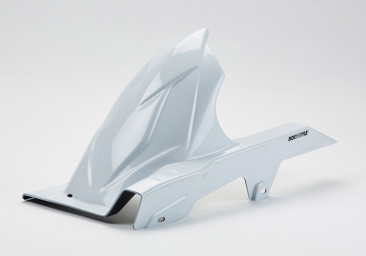 Die BODYSTYLE Sportsline Hinterradabdeckung bringt sportlich dynamische Konturen in Originalfarbe an das Hinterrad von Sport- und Naked-Bikes. Das Styling Part aus hochfestem ABS Kunststoff bietet idealen Spritzschutz für das Zentralfederbein. Mit ABE.
