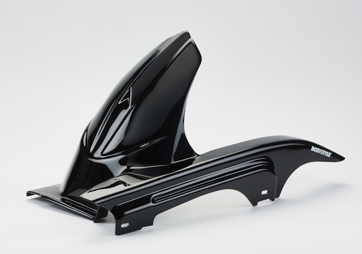 Die BODYSTYLE Sportsline Hinterradabdeckung bringt sportlich dynamische Konturen in Originalfarbe an das Hinterrad von Sport- und Naked-Bikes. Das Styling Part aus hochfestem ABS Kunststoff bietet idealen Spritzschutz für das Zentralfederbein. Mit ABE.