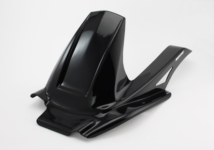 Die BODYSTYLE Sportsline Hinterradabdeckung bringt sportlich dynamische Konturen in Originalfarbe an das Hinterrad von Sport- und Naked-Bikes. Das Styling Part aus hochfestem ABS Kunststoff bietet idealen Spritzschutz für das Zentralfederbein. Mit ABE.