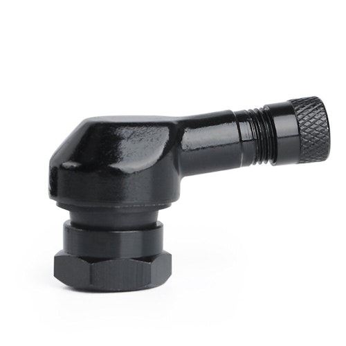 Aluminium Winkelventil in silber mit 90° Winkel für Motorräder. Vor Montage des Ventils Felgenhorn und das Ventilloch gründlich reinigen. Vor dem Einbau das Ventil mit Montagepaste oder ähnlichen Gleitmitteln einstreichen.