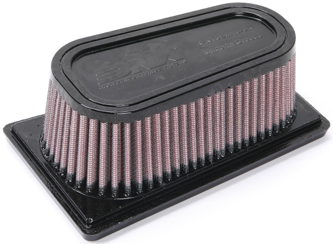 DNA Tauschluftfilter Waschbarer und wiederverwendbarer Hochleistungs-Tauschluftfilter. Durch die FCd (Full Contour design) Technology wird die gesamte Fläche des Luftfilterkasteneinlasses als Filtermedium genutzt. Dadurch vergrößert sich der Filterbereich zwischen 20-80%, der Luftstrom wird erhöht und die Leistung des Motors somit gesteigert. Mit dem erhöhten Luftdurchlass wird zusätzlich der Benzinverbrauch reduziert. Das DNA-Filtermedium besteht aus vier Lagen speziellem DNA-Baumwollgewebe die von zwei beschichteten Aluminium-Drahtgeflechten zusammengehalten werden. Durch die spezielle Falttechnik des Filtermediums vergrößert sich der Innenradius der Faltenspitzen und die dadurch entstehenden Flächen dienen der zusätzlichen Filterung.