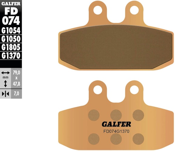 GALFER FD074 Sintermetall-Bremsbelag für die Straße. Goldener Belagsatz auf Stahl für maximale Bremskraft jenseits der ECE-R-90 Industrienorm.