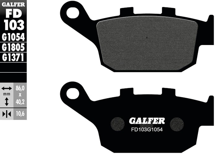 Zertifizierter GALFER Bremsbelag FD103 als Satz. Organisches G1054 Material auf Stahl für maximale Sicherheit, die ECE-R-90-Vorgaben übertrifft.