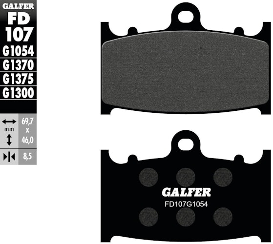 Zertifizierter GALFER Bremsbelag FD107 im Satz. Organisches G1054 Material auf Stahl für höchste Sicherheit und Zuverlässigkeit jenseits der Norm.