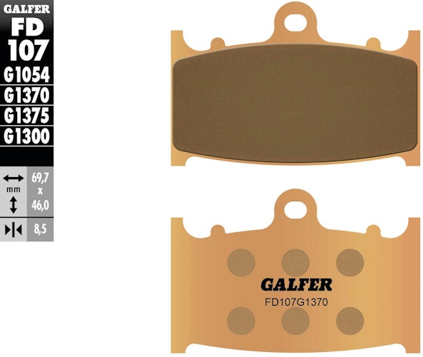 GALFER FD107 Sintermetall-Bremsbelag für die Straße. Brauner Belagsatz auf Stahl für maximale Bremskraft jenseits der ECE-R-90 Industrienorm.