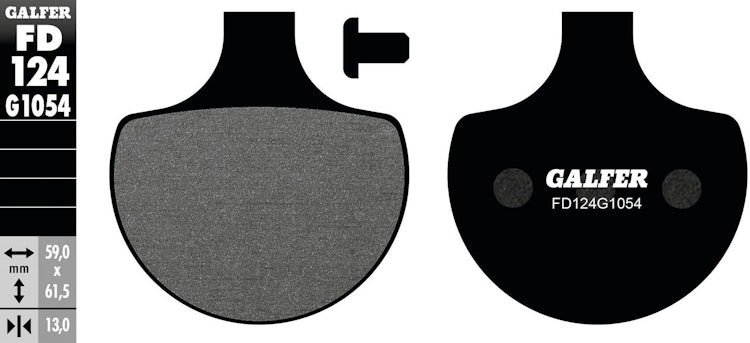 Zuverlässiger GALFER Bremsbelag FD124 für Motorräder und Fahrräder. Der organische Satz G1054 aus Stahl bietet geprüfte Sicherheit und Bremskraft jenseits der ECE-R-90-Standards.
