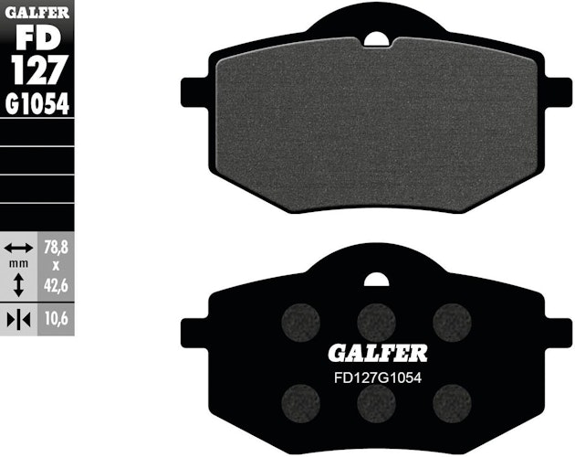 GALFER FD127 Bremsbelagsatz aus organischem G1054 Material. Diese Stahlbeläge überzeugen durch technologische Innovation und maximale Zuverlässigkeit unter härtesten Bedingungen.