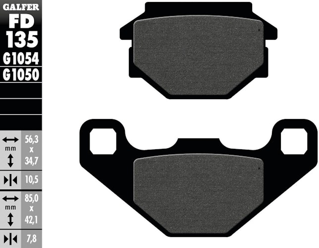 Zertifizierter schwarzer GALFER FD135 Bremsbelag. Satzweise Lieferung aus Stahl mit organischem Belag G1050 für stabile Bremsleistung und maximale Sicherheit.