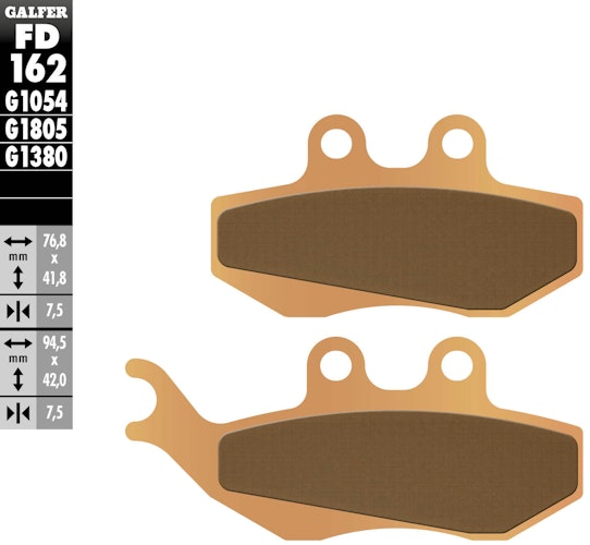 Zertifizierter GALFER FD162 Sintermetall Scooter Bremsbelag G1380. Satzweise Lieferung aus Stahl für stabile Bremsleistung und maximale Sicherheit.