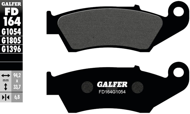 Zertifizierter GALFER Bremsbelag FD164 im Satz. Organisches Standard-Material G1054 auf Stahl für höchste Sicherheit und Zuverlässigkeit jenseits der Norm.