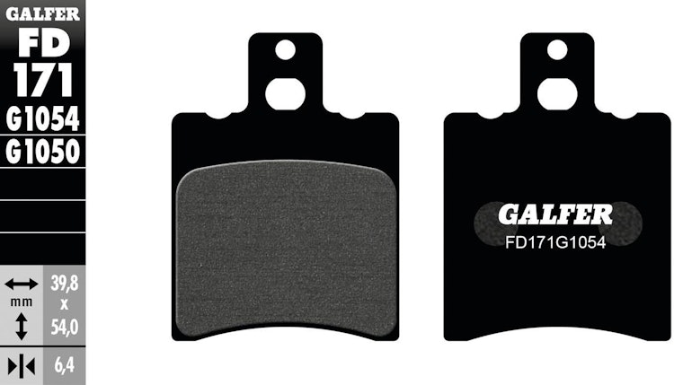 Robuster schwarzer GALFER FD171 Bremsbelagsatz. Die organische G1054-Konstruktion auf Stahl garantiert hohe Sicherheit und Beständigkeit.