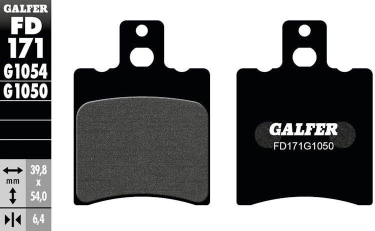 Hochwertiger GALFER FD171 Bremsbelag für Scooter. Satzweise Lieferung in Schwarz aus Stahl mit organischem Belag G1050 für stabile Bremsleistung.