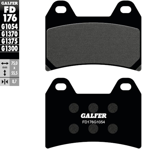 Zertifizierter GALFER Bremsbelag FD176 im Satz. Organisches G1054 Material auf Stahl für höchste Sicherheit und Zuverlässigkeit jenseits der Norm.