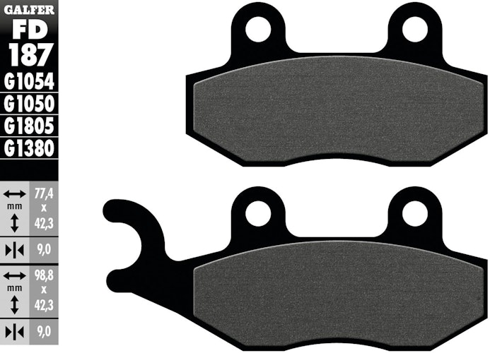 Hochwertige GALFER FD187 Bremsbeläge in Stahl-Bauweise. Höchste Sicherheit und Bremskraft durch jahrzehntelange Erfahrung und innovative Fertigung für Scooter.