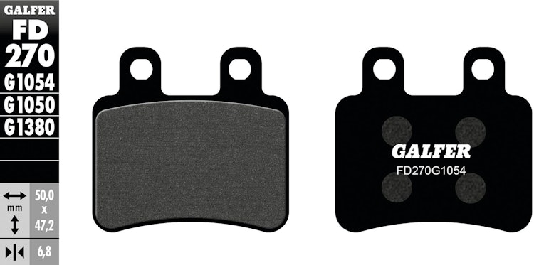 Hochwertiger GALFER FD270 Bremsbelag aus organischem G1054. Satzweise Lieferung in Schwarz aus Stahl für höchste handwerkliche Qualität.