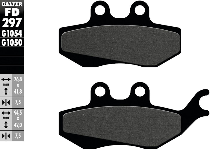 Zertifizierter GALFER Bremsbelag FD297 im Satz. Organisches Material G1054 auf Stahl für geprüfte Sicherheit durch ECE-R-90 Übererfüllung.