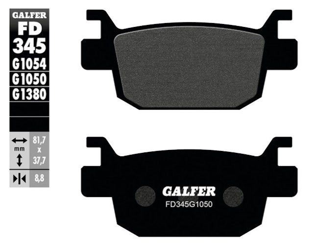 GALFER FD345 Bremsbelagsatz aus organischem G1050 Scooter-Material. Stahlträger für präzise Bremsmanöver und höchste Ansprüche an Qualität und Sicherheit.