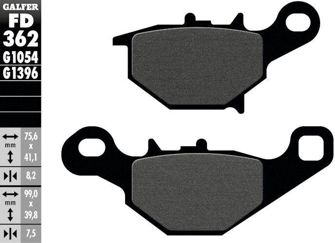 Zertifizierter GALFER Bremsbelag FD362 im Satz. Organisches Material G1054 auf Stahl für geprüfte Sicherheit durch ECE-R-90 Übererfüllung.