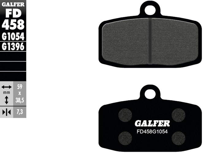 Zertifizierter GALFER Bremsbelag FD458 aus organischem Standardmaterial G1054. Satzweise Lieferung in Braun aus Stahl für geprüfte Sicherheit jenseits der Norm.