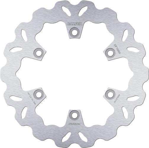 Leistungsstarke GALFER DF159 Bremsscheibe. Starre Wave-Konstruktion aus Spezialstahl mit R90R-Zertifizierung für höchste Formstabilität und Sicherheit im Einsatz.