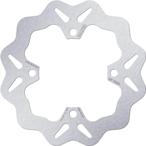 Professionelle GALFER Wave-Bremsscheibe DF193 für Motorräder. Gefertigt aus Stahl in starrer Bauweise mit gesenkten Bohrungen, bietet sie überlegene Sicherheit und Bremskraft.