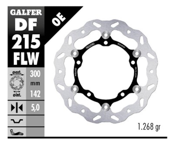 Zertifizierte GALFER DF215 Wave-Bremsscheibe. Schwimmende Stahlkonstruktion mit R90R-Zulassung für höchste Sicherheitsansprüche und maximale Bremskraft.