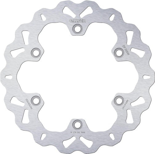Zuverlässige GALFER Wave-Bremsscheibe DF355 für Motorräder. Die starre Konstruktion aus Stahl bietet geprüfte Sicherheit und Bremskraft jenseits der ECE-R-90-Standards.