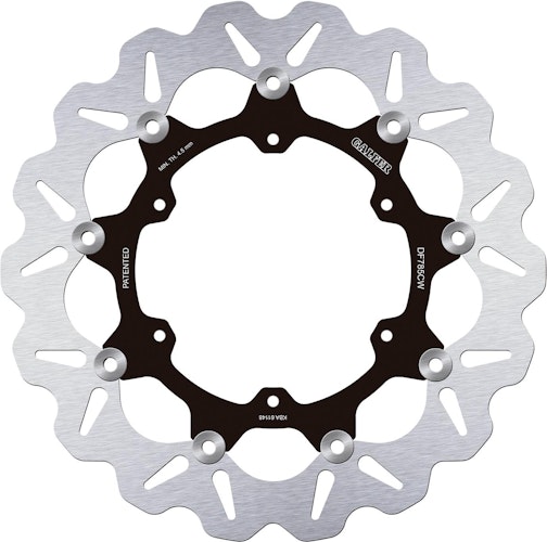 Zertifizierte GALFER DF785 Wave-Bremsscheibe. Schwimmende Bauweise aus Stahl und Aluminium mit R90R-Zulassung für höchste Sicherheitsansprüche.