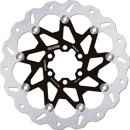 Hochwertige GALFER DF800 Wave-Bremsscheibe, schwimmend gelagert aus Stahl und Aluminium. Zweifarbiges Design und geprüfte Sicherheit jenseits der Industrienorm.