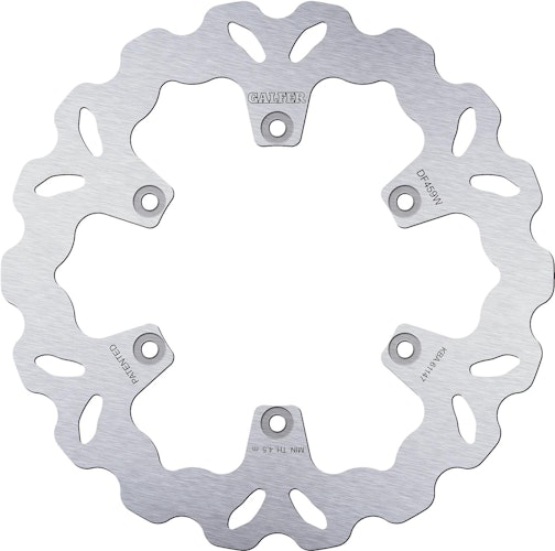 Robuste GALFER DF459 Bremsscheibe. Starre Wave-Konstruktion aus Stahl für hohe Sicherheit, konstante Reibwerte und extreme Widerstandsfähigkeit im Einsatz.