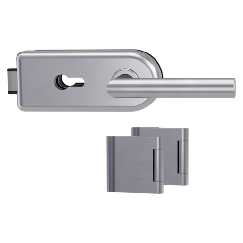 Griffwerk CLASSICO 1.0 -Edelstahl matt Ganzglastürbeschlagset -3-teiliger Bandsatz -mit Griff LUCIA PROF EM -PZ