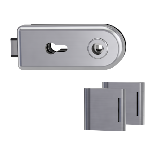Griffwerk CLASSICO 1.0 -Edelstahl matt Ganzglastürbeschlagset -3-teiliger Bandsatz -ohne Griff -PZ, WC Knaufzylinder Schlossgegenseite