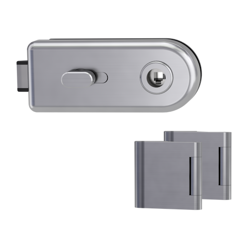 Griffwerk CLASSICO 1.0 -Edelstahl matt Ganzglastürbeschlagset -3-teiliger Bandsatz -ohne Griff -PZ, WC Knaufzylinder Schlossseite