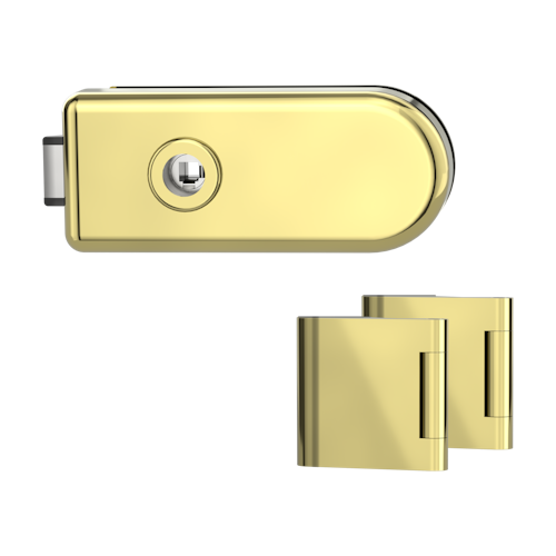 Griffwerk CLASSICO 1.0 -Messing Optik Ganzglastürbeschlagset -3-teiliger Bandsatz -ohne Griff -UV