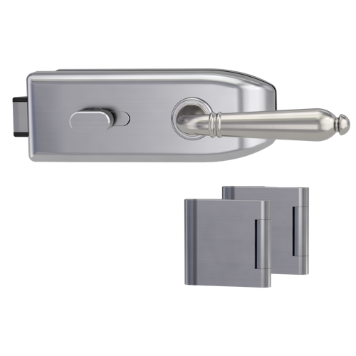 Griffwerk CREATIVO 1.0 -Edelstahl matt Ganzglastürbeschlagset -3-teiliger Bandsatz -mit Griff CAROLA Schraubt. -SG -WC Schl.s