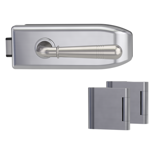 Griffwerk CREATIVO 1.0 -Edelstahl matt Ganzglastürbeschlagset -3-teiliger Bandsatz -mit Griff FABIA Schraubt. -SG -UV