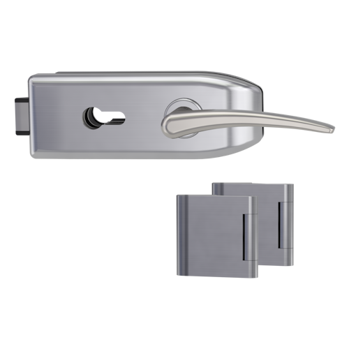 Griffwerk CREATIVO 1.0 -Edelstahl matt Ganzglastürbeschlagset -3-teiliger Bandsatz -mit Griff MARISA Schraubt. -SG -PZ