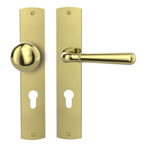 Griffwerk FABIO -Messing Optik Langschild-Garnitur -sichtbar verschraubt -Knopf R21 -WR -TS 40-45mm