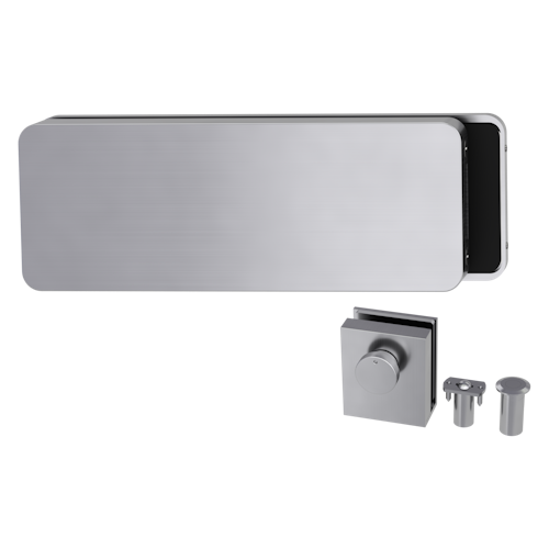 Griffwerk GATE | DESIGN MANUFAKTUR 1.0 -Edelstahl Optik matt Ganzglastürbeschlagset -3-teiliger Bandsatz -ohne mit Türschnäpper/Feststellset -Gegenkasten