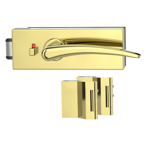 Griffwerk Glastürbeschlag PURISTO S mit Griff MARISA PROF smart2lock Flüster 3-tlg. Bänder MARISA Messing-Optik