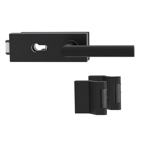 Griffwerk Glastürbeschlag PURISTO S mit Griff TRI 134 Profilzylinder Flüster 3-tlg. Bänder TRI 134 Graphitschwarz