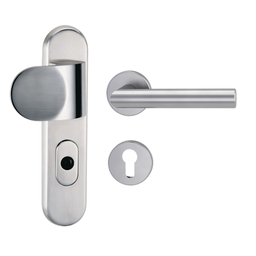 GRIFFWERK Edelstahl Kombi-Schutzbeschlag geeignet für den Einsatz im Privat- und Objektbereich, geprüft und zertifiziert nach DIN EN 1906 Anhang A und DIN 18257