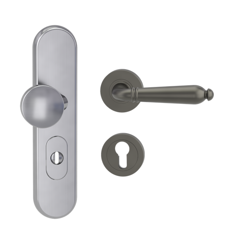 Griffwerk Kombi-Schutzbeschlag TITANO SB_882 mit Griff CAROLA 72mm Zylinderabdeckung Tür 38-50mm CAROLA Kaschmirgrau