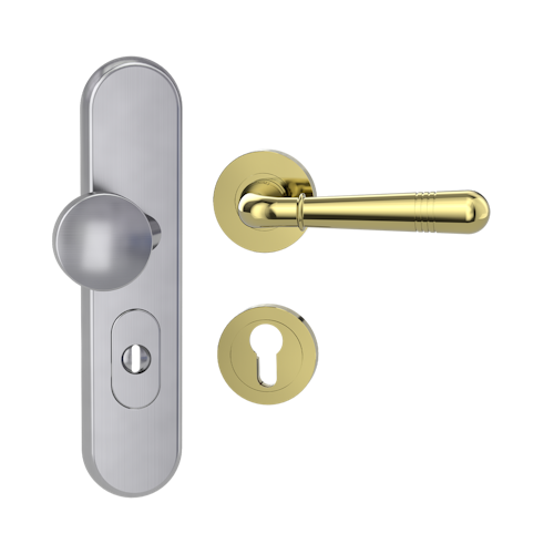 Griffwerk Kombi-Schutzbeschlag TITANO SB_882 mit Griff FABIA 72mm Zylinderabdeckung Tür 38-50mm R FABIA Messing-Optik