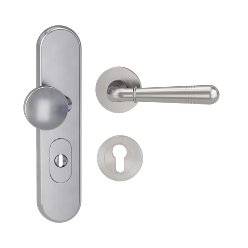 GRIFFWERK Edelstahl Kombi-Schutzbeschlag geeignet für den Einsatz im Privat- und Objektbereich, geprüft und zertifiziert nach DIN EN 1906 Anhang A und DIN 18257