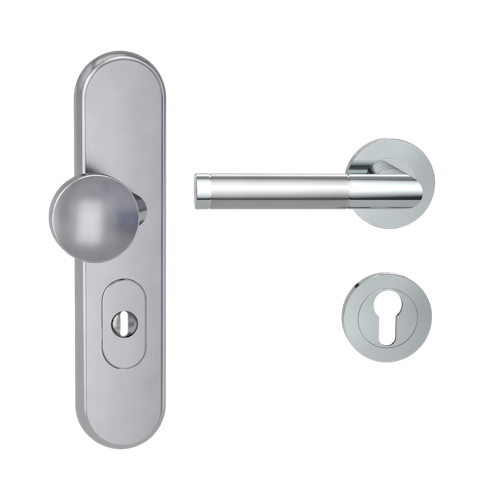 GRIFFWERK Edelstahl Kombi-Schutzbeschlag geeignet für den Einsatz im Privat- und Objektbereich, geprüft und zertifiziert nach DIN EN 1906 Anhang A und DIN 18257