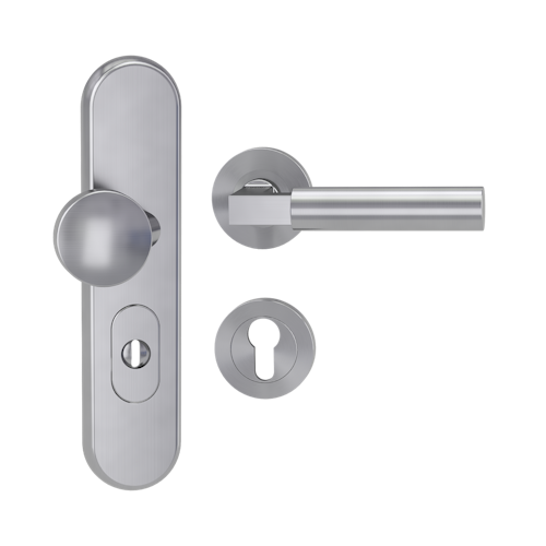 Griffwerk Kombi-Schutzbeschlag TITANO SB_882 mit Griff METRICO PROF 72mm Zylinderabdeckung Tür 38-50mm R METRICO PROF rund Edelstahl matt